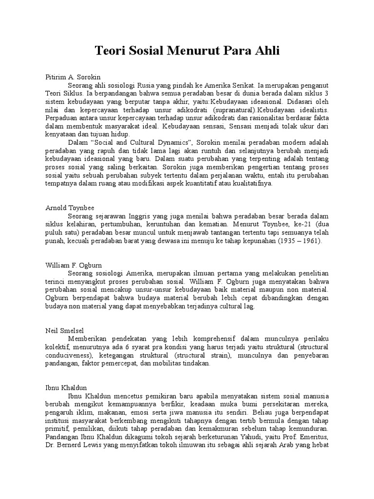 Teori Sosial Menurut Para Ahli