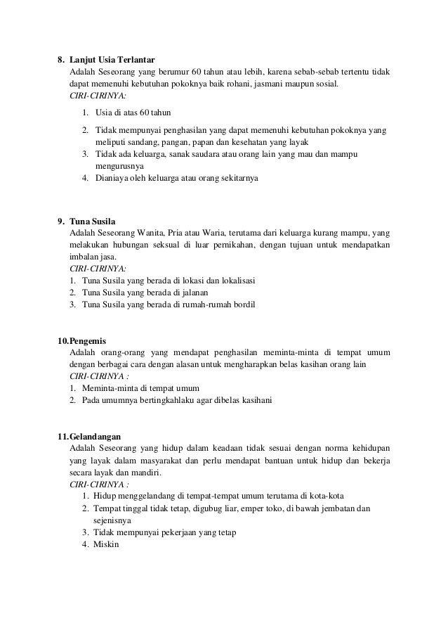 Definisi Dan Kriteria Penyandang Masalah Kesehjateraan Sosial