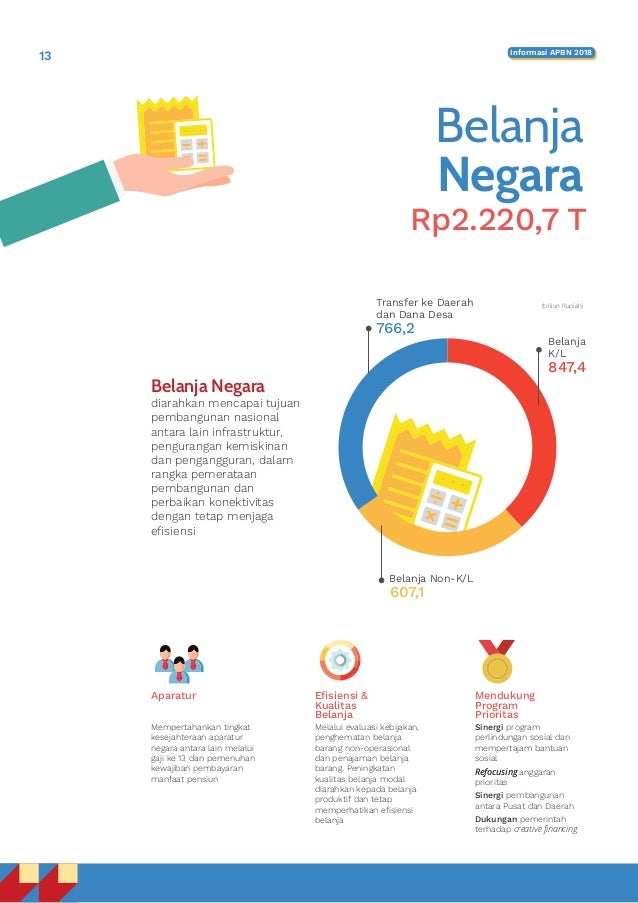 Kenaikan kedua disebabkan adanya pergeseran anggaran subsidi Beras Sejahtera Rastra. APBN 2018 yang disepakati mencantumkan target pendapatan negara sebesar Rp 18947 triliun dan pagu belanja negara Rp22207 triliun. Direktorat Jenderal Pemberdayaan Sosial 4 Alokasi Anggaran Per Kewenangan dalam ribu rupiah Tahun Anggaran 2018 Pusat Dekon TP Rp229190072-.